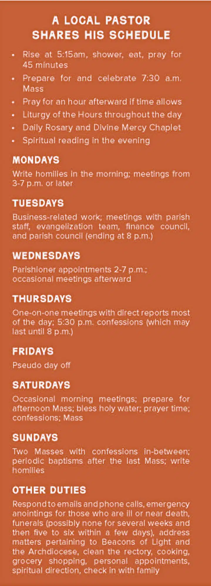Next time, we will explore some of the spiritual battles that these chosen men must engage in and how the laity play an integral role in supporting them. ✣