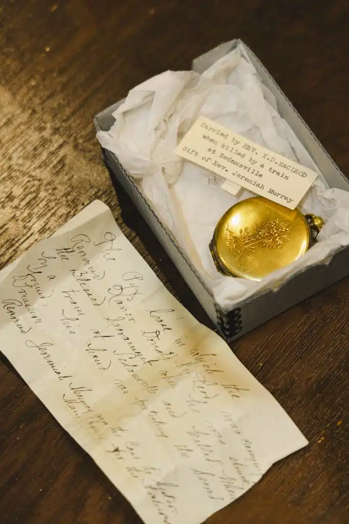 On June 30, 1865, Rev. Xavier Donald MacLeod set out to bring Communion to a woman who had fallen ill. He carried the Eucharist with him in that pyx, tucked close as he traveled. While crossing the train tracks on his way to the sick call, he was struck and killed. The woman survived her illness, but he did not survive his journey to her. What was meant as Christ’s presence in her suffering became Christ’s own mercy for him instead, a quiet grace that found him at the moment he needed it most.