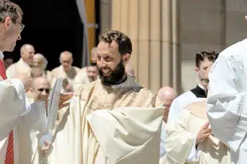 Staff Report The ordination of new priests at the Cathedral of St. Peter in Chains always showcases the beauty of the liturgy and the grandeur our local cathedral. Sometimes photographers are also able to capture rarely seen moments that happen behind the scenes. The ordination of Father Ethan Moore, Father Adrian …