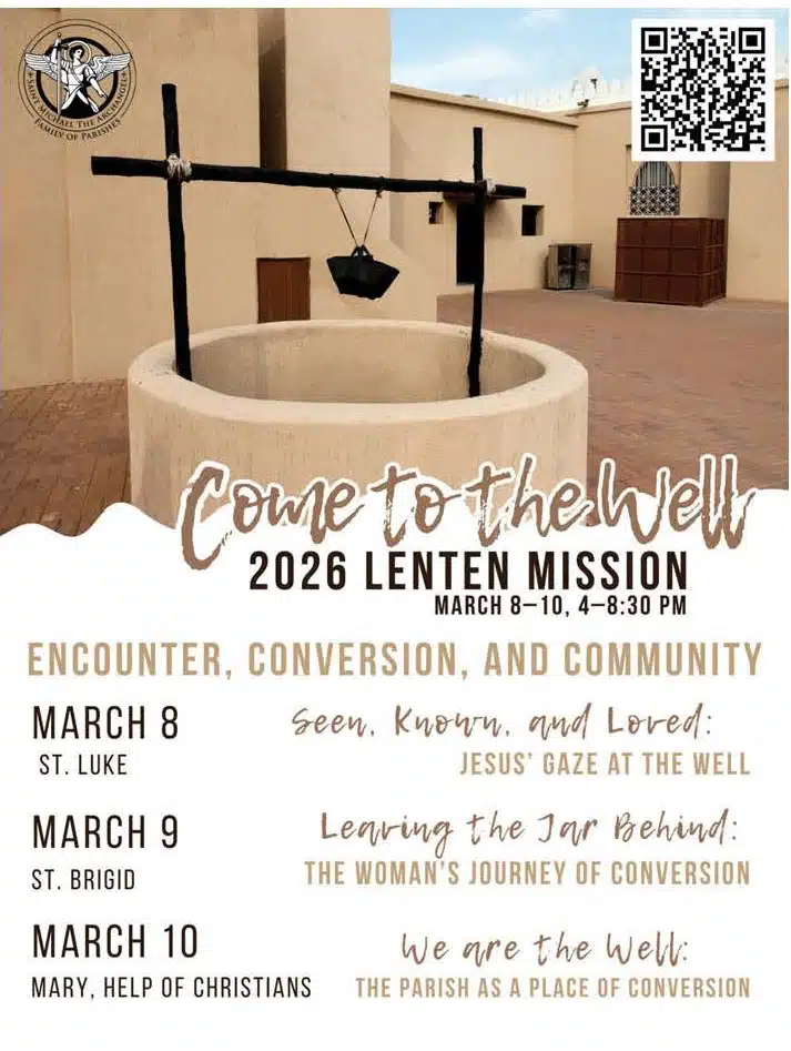 We invite everyone to our Lenten Mission on March 8 through 10 at our family of St. Michael the Archangel parishes. There will be a dinner, a Holy Hour, confessions and presentations at St. Luke in Beavercreek, St. Brigid in Xenia and Mary, Help of Christians in Fairborn. Adoration and confessions begin at 4:00 p.m. The evening concludes at 8:30 p.m.