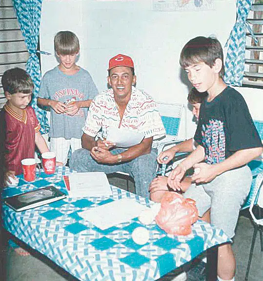 While working on the field, the Gables found out that Concepción had been made the coach of a winter league team in Caracas and was bringing the players to Barquisimeto. “We thought, what the heck, let’s go meet him. We got to the ballpark early and my sons had their Reds stuff on.”