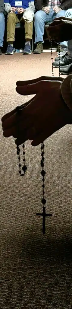 Fathers Team meets weekly, often early in the morning before the workday begins. Some men arrive even earlier to pray the Rosary together. Meetings include Scripture, prayer, and reflections on topics that connect Catholic teaching to real life. Those topics range from vocation and marriage to work, joy, suffering, and the cultural pressures that shape family life.