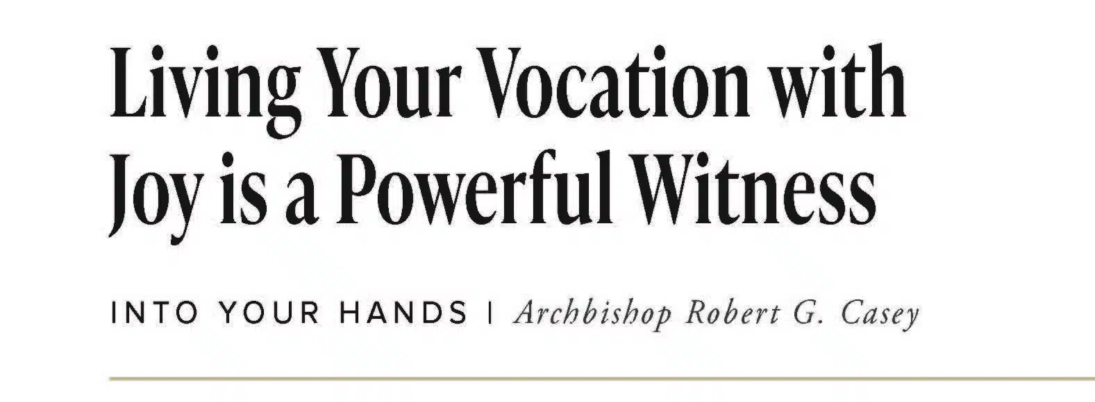 By joyfully and faithfully living out our vocations, we become witnesses for others. We must be bold in revealing ourselves and our Catholic traditions to the world around us. As others come to know us and see the commitment with which we live our vocations of marriage, holy orders, consecrated life or single life, they too might choose to embrace our traditions. Our vocational witness today may serve to invite others tomorrow to be unafraid, trust in God, and take a big bite out of life. ✣