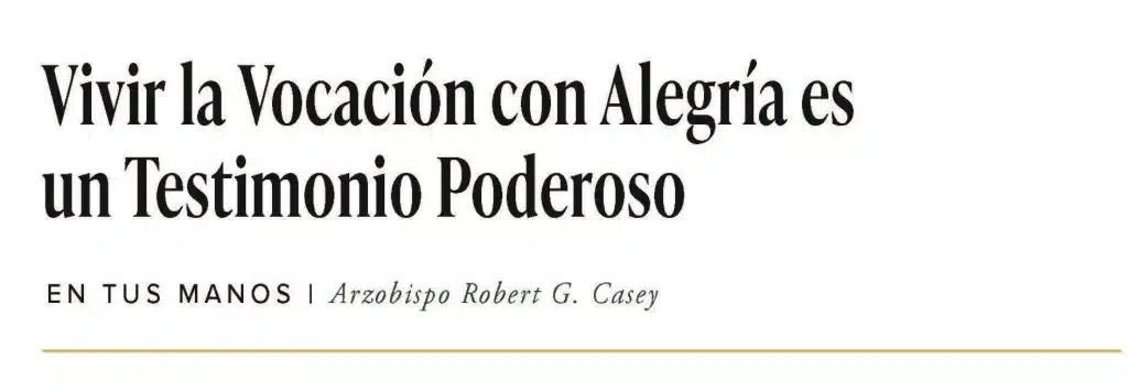 Al vivir con alegría y fidelidad nuestra vocación, nos convertimos en testigos para los demás. Debemos ser valientes al revelarnos a nosotros mismos y nuestras tradiciones católicas al mundo que nos rodea. A medida que otros nos conozcan y vean el compromiso con el que vivimos nuestra vocación de matrimonio, órdenes sagradas, vida consagrada o vida de solteros, ellos también podrán optar por abrazar nuestras tradiciones. Nuestro testimonio vocacional de hoy puede servir para invitar mañana a otros a no tener miedo, a confiar en Dios y a dar una gran mordida a la vida. ✣