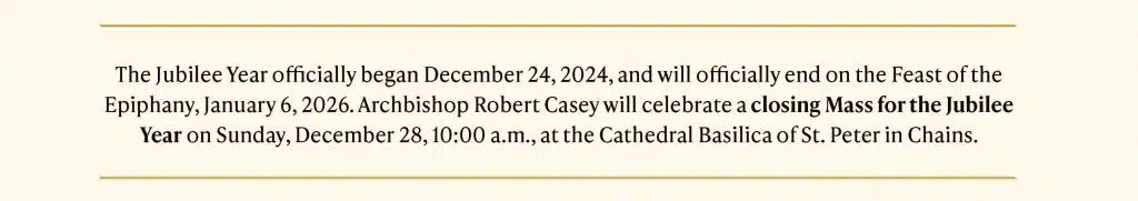 A jubilee year is rooted in the Old Testament tradition of a holy year set aside, dedicated to grace, forgiveness, and spiritual renewal. In ancient times, a “year of jubilee” meant that debts were to be forgiven and the oppressed set free. The Catholic Church calls a Jubilee every 25 years for the faithful to experience a time focused on repentance, reconciliation, and works of mercy.