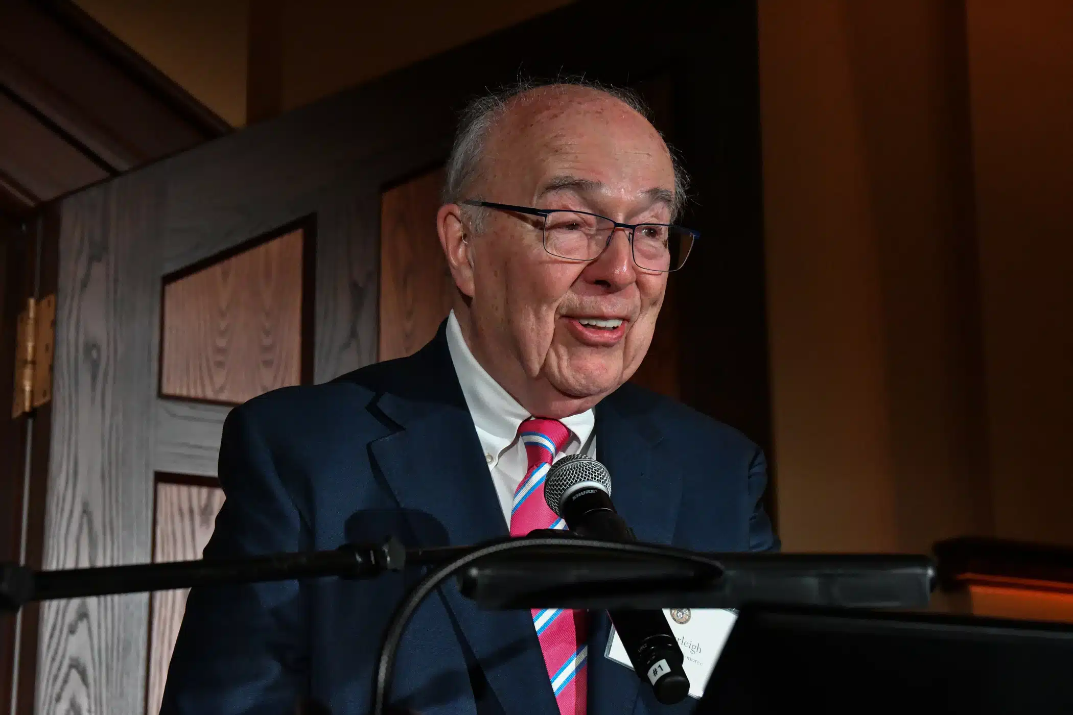 Most Rev. Earl K. Fernandes, Bishop of Columbus and Vice-Chancellor of the Josephinum, gave a testimonial to Good Shepherd Award recipient Rev. Msgr. Frank P. Lane of the Diocese of Columbus.