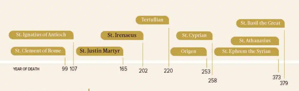What is hinted at in Justin, though, becomes beautifully elaborated in the Church’s first theologian. Writing around 180 in France, St. Irenaeus still breathed the air of the Apostles: he was a disciple of St. Polycarp who was a disciple of St. John, and he saw it as his mission to defend the apostolic faith against the threat of Gnosticism.