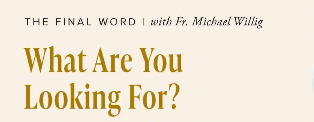 With these words—What are you looking for?—Jesus begins an invitation for Andrew to follow Him. Ultimately, Jesus calls each of us to follow Him as a Christian and in our particular vocation.