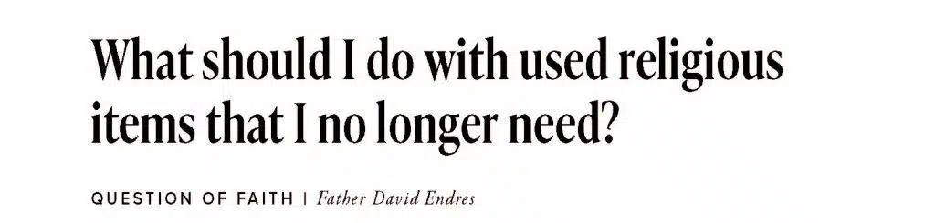 But all good things reach their useful end. We may wonder what to do with a broken rosary, a damaged crucifix, a worn-out Bible, or a long-weathered Virgin Mary statue. Can they be discarded or recycled? What is proper for these items with ties to faith and practice?